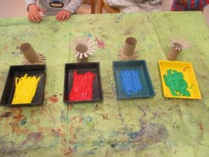 Nein, wir basteln in der Kita nicht nur. Aber auch. Und wir machen es gern. Denn neben der Freude und Kreativität der Kinder fördert es die Konzentrationsfähigkeit, die Geduld und die Hand-Augen-Koordination sowie Feinmotorik. Eine ganze Menge wertvoller Dinge entstehen also beim Basteln. So wie zum Beispiel die 3D Wolken im Spatzenbereich der Kita Villa Murkelmaier. Mit Hilfe einer Pädagogin schnitten die 3-6-Jährigen eine Wolke aus Papier aus und beklebten diese von beiden Seiten mit Watte. Für die Regentropfen wurden Bügelperlen aufgefädelt und an die Wolke geknotet. All dies wurde mit einem von den Kindern gestalteten Regenbogen verbunden.