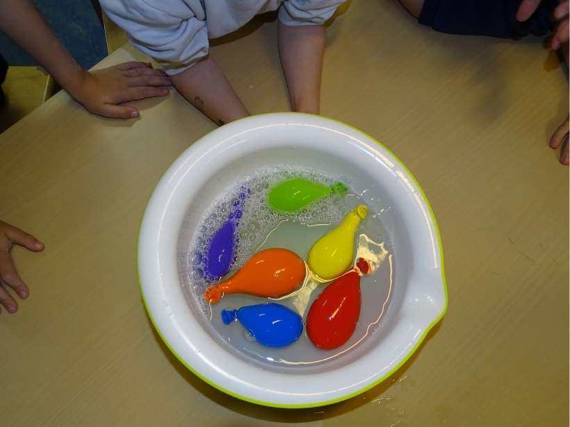 Die Pädagoginnen der Kita Villa Murkelmaier haben sich etwas Besonderes für die Kinder ausgedacht. Denn sie wissen, auch Kinder erleben Stress. Manchmal laut, manchmal leise, manchmal versteckt hinter „Ich mag nicht“ oder „Das ist doof“. Und genau deshalb dürfen sich auch ihre Anspannungen lösen. Spielerisch, forschend, lachend. Unsere Kinder der Kita Villa Murkelmaier haben hierfür ihre eigenen Anti‑Stress‑Bälle hergestellt. Die Pädagoginnen haben den Kindern geholfen die Ballons vorher einmal ordentlich aufzupusten, dann kommt das Mehl besser in den Ballon. Anschließend wurden die Ballons in warmen Wasser mit Spüli ein paar Minuten gewaschen. Nach dem Abtrocknen kam der Überraschungsmoment: Die Ballons wurden leicht klebrig. Perfekt, um sie aneinander haften zu lassen. So wurde aus Anti‑Stress‑Bällen ein Anti‑Stress‑Bauwerk. Die Kinder konnten ziehen, drücken, stapeln, auseinanderpflücken und dabei jede Menge Spannung abbauen. Ein kleines Experiment mit großer Wirkung.